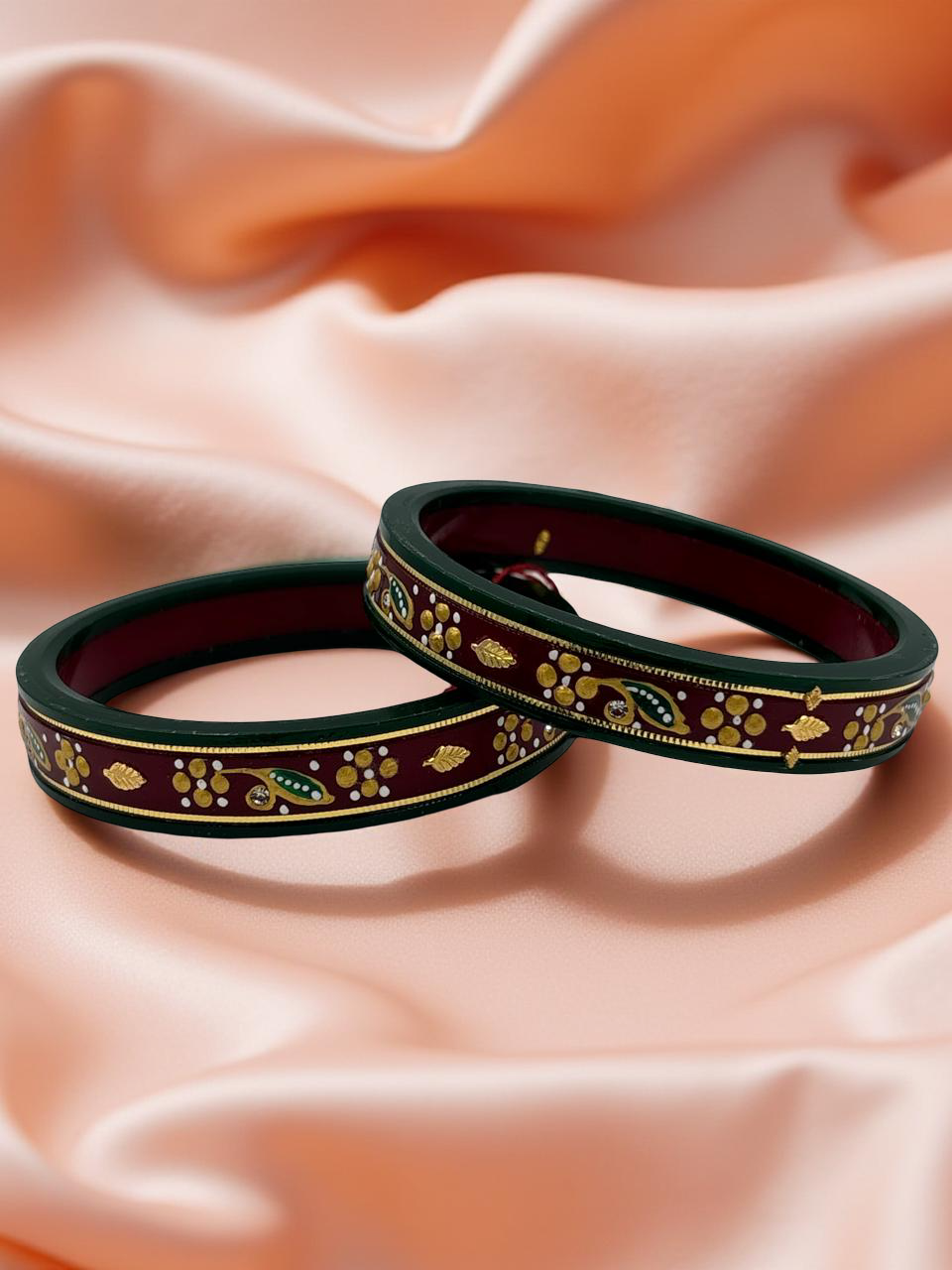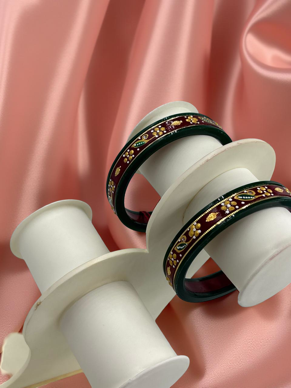 Unrivaled Craftsmanship: These stunning bangles feature intricate 22k gold monogram designs, delicately painted onto high-quality, durable plastic bangles. Our skilled painters pour their expertise into every brushstroke, creating unique patterns that reflect sophistication and heritage. The vibrant gold designs beautifully contrast with the base, ensuring these bangles stand out as a captivating accessory for any occasion.