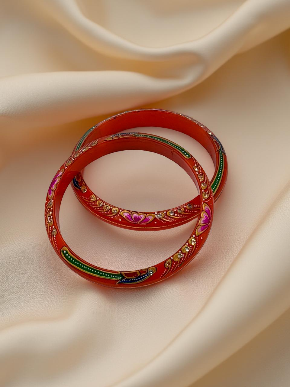 Adorn your wrists with these breathtaking hand-painted Khadak bangles, a testament to traditional artistry and modern craftsmanship. Each bangle is a unique masterpiece, meticulously crafted on high-quality plastic by our top painters from across the country.