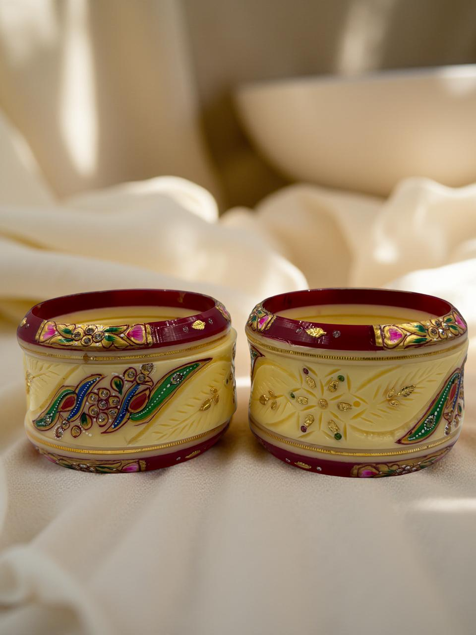 What sets this chuda set apart is its magnificent finish. Each individual bangle is meticulously hand-painted by top artists from across the country. This dedication to fine detail gives the set a genuinely rich, traditional, and artistic finish, ensuring no two sets are exactly alike. The vibrant colors and intricate patterns evoke the opulence of classic Indian bridal wear.
